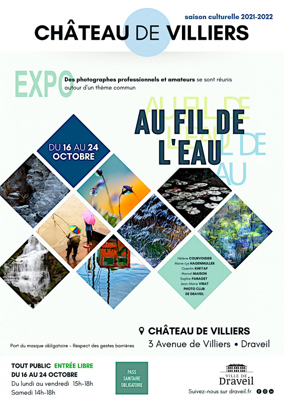 Des Artistes photographes se réunissent et vous invitent à un voyage au fil de l’eau, ce que l’on laisse couler, courir au gré des passages. Une histoire différente pour chacun, des invitations poétiques à la rêverie, aux souvenirs intimes, suivre les belles lumières du matin ou du soir au fil des chemins, des rivières de notre territoire. Une vraie réjouissance visuelle offerte par les couleurs chatoyantes, les reflets des perles d’eau et les jeux de lumière.