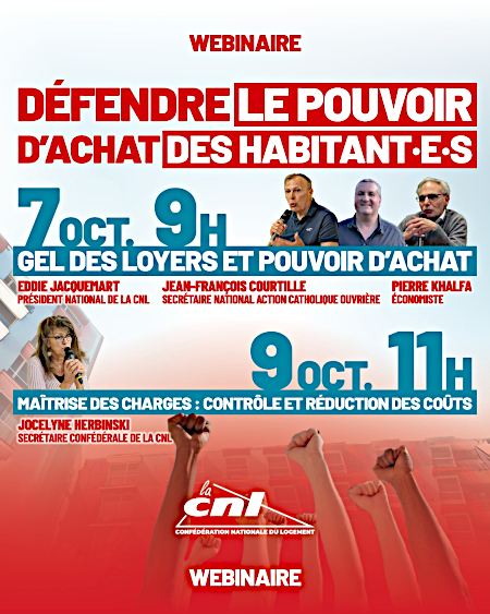 Depuis plusieurs années, la Confédération Nationale du Logement (CNL) marque la Journée nationale des droits des habitants en écho à la Journée mondiale de l’habitat, créée par l’ONU en 1985. Dans le cadre de cette journée, la CNL est mobilisée dans toute la France pour faire signer la pétition pour le gel des loyers et la construction de logements sociaux. Vous pouvez également vous inscrire pour participer à 2 webinaires organisés par la CNL : "Gel des loyers et pouvoirs d'achat" et "Maîtrise des charges : contrôle et réduction des coûts".